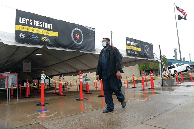 WARREN, Mich. — More than 130,000 autoworkers returned to factories across the U.S. for the first time in nearly two months Monday in one of the biggest steps yet to restart American industry, while an experimental vaccine against the coronavirus yielded encouraging results in a small and extremely early test.