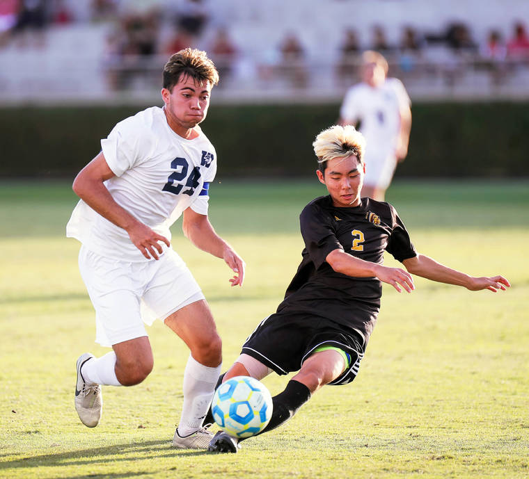 “We totally changed the way we played. Waiakea used to be hit it up to your fast players and hopefully you can score,” he said. “We actually decided to possess the ball and manipulate where the other players were and get it in the right spot, so that we control the game and control where we wanted the ball to go and hopefully control the score, too. Stay aggressive and go for it.”