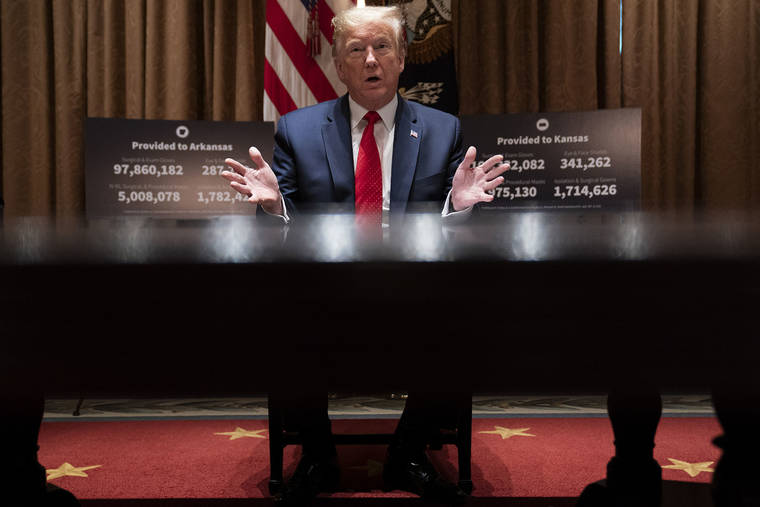 WASHINGTON — President Donald Trump on Wednesday threatened to delay federal funds for two election battleground states that are trying to make it easier and safer to vote during the coronavirus pandemic. He backed away from that threat but stuck with his unsupported claim that widespread voting by mail promotes “a lot of illegality.”