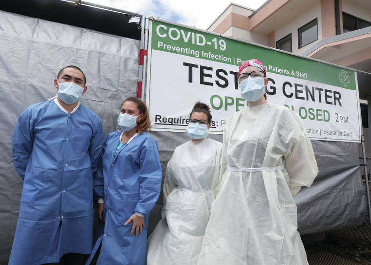 Four people — two employees from Hilo Medical Center and two from Clinical Labs Hawaii— usually work the drive-through tent, which has tested nearly 1,200 people since March.