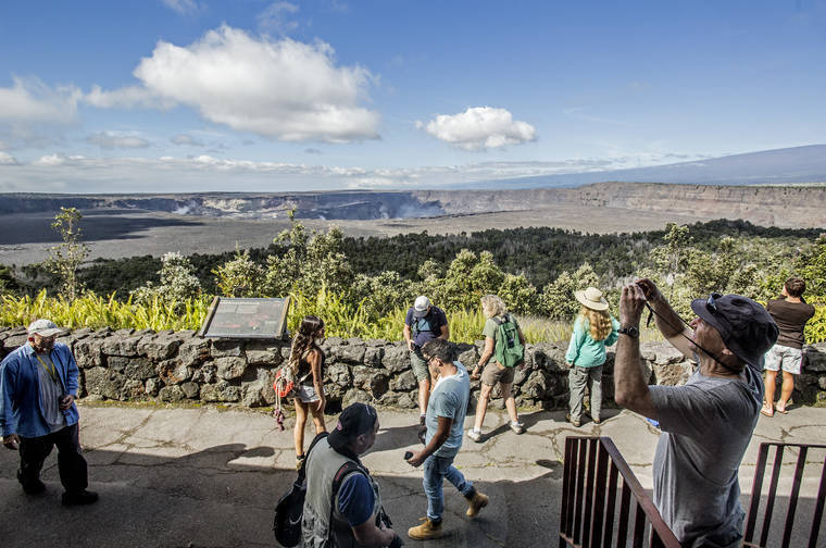 HOLLYN JOHNSON/Tribune-Herald file photo Visitors take in Halemaumau crater Sept. 22 after Hawaii Volcanoes National Park reopened after being closed during the 2018 Kilauea eruption.
