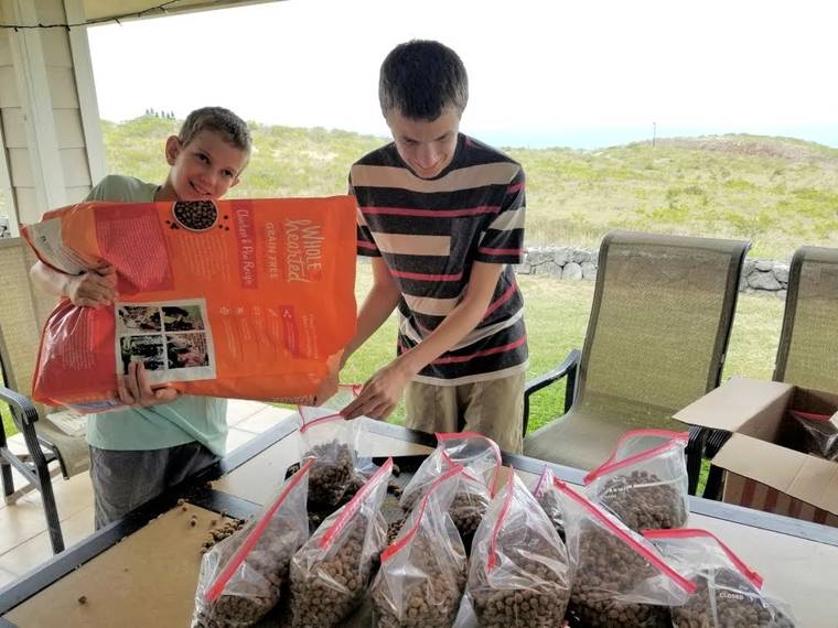 “Where they’re feeding people in Waimea, we’re feeding pets,” Cravatta said. “We’re bagging food for animals. The Salvation Army is coming to us for pet food. We’re feeding hungry dogs and cats and humans.”