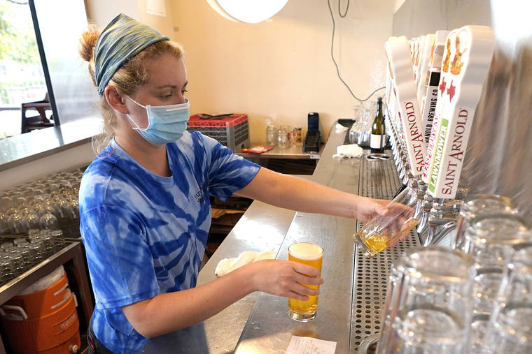 Bartender Katie McGranahan pours a beer Friday at the Saint Arnold Brewing Company in Houston. (AP Photo/David J. Phillip)