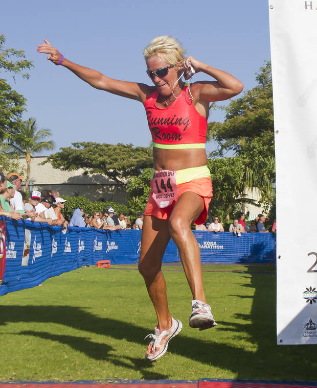 Eight-time former Kona Marathon winner Jeannie Wokasch is a fixture at the Kona Marathon. (Rick Winters/West Hawaii Today File Photo)