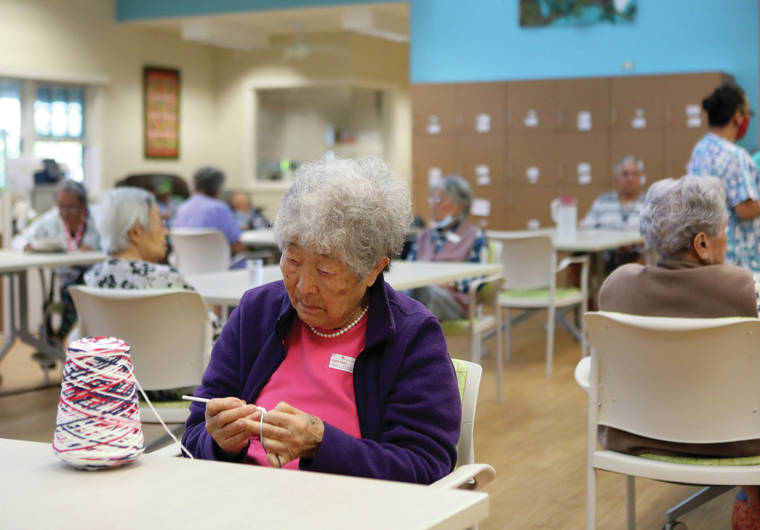 KELSEY WALLING/Tribune-Herald Loraine Asakura sews Wednesday while sitting inside The Harry and Jeanette Weinberg Adult Day Center in Hilo.