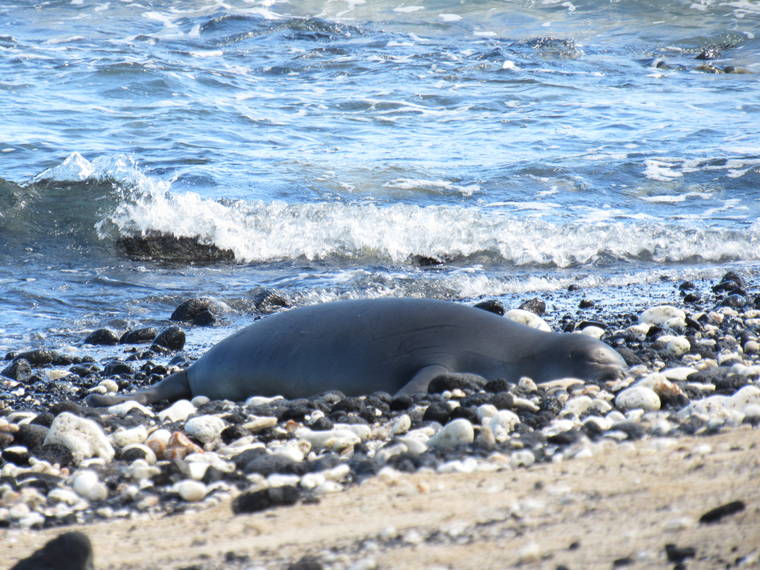 An estimated 1,400 monk seals inhabit the main and Northwestern Hawaiian islands, according to NOAA. Approximately 300 of those seals cruise the waters and haul up on beaches in the main Hawaiian Islands, including about a half dozen on the Big Island.
