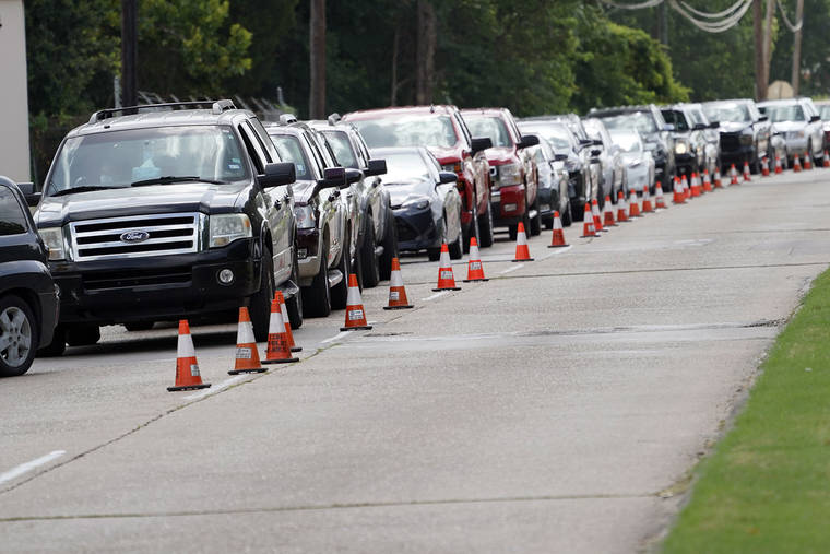 People wait inside their vehicles in line at COVID-19 testing site Wednesday, July 8, 2020, in Houston. Texas has surpassed 10,000 new coronavirus cases in a single day for the first time as a resurgence of the outbreak rages across the U.S. The record high of 10,028 confirmed cases Tuesday follows Republican Gov. Greg Abbott decision to mandate masks in much of the state and to close bars, retreating from what had been one of America’s fastest reopenings. (AP Photo/David J. Phillip)