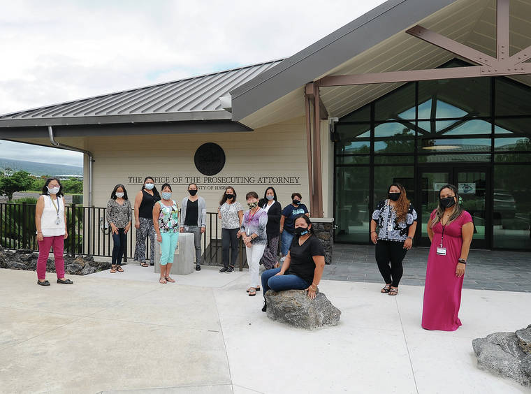 LAURA RUMINSKI/West Hawaii Today Staff stand in front of the new Office of the Prosecuting Attorney at the West Hawaii Civic Center in Kona.