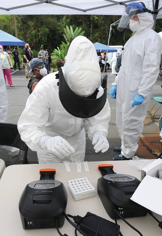 Premier Medical Group, with assistance from the Hawaii Fire Department, EMS, National Guard and volunteers performed nearly 600 tests at the campus on Thursday. Results were expected within 24 hours, however, they were not made public as of press-time Friday.