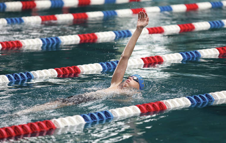 Kelsey Walling/Tribune-Herald Moluhi Kaye completes works on his backstroke Friday at the Kawamoto Swim Stadium in Hilo.