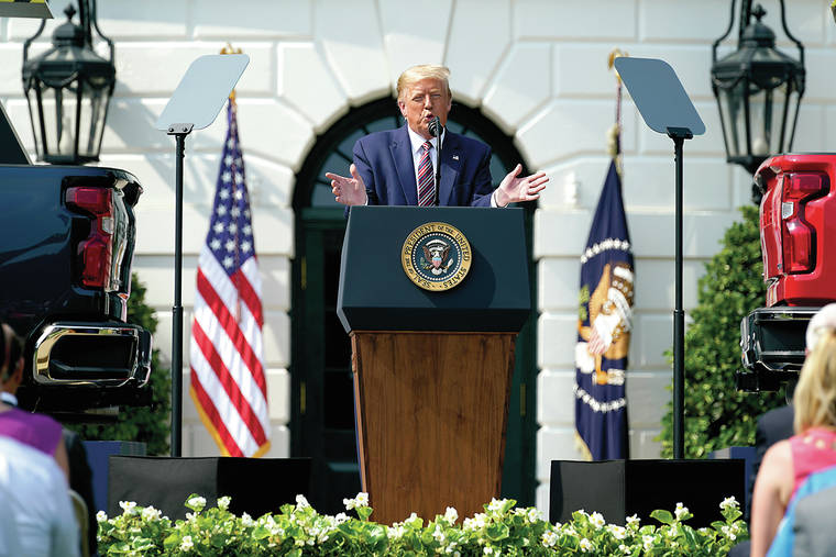 President Donald Trump speaks Thursday during an event on regulatory reform on the South Lawn of the White House in Washington. (AP Photo/Evan Vucci)