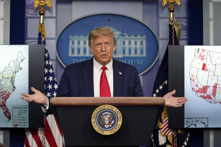President Donald Trump speaks during a news conference at the White House, Thursday, July 23, 2020, in Washington. (AP Photo/Evan Vucci)