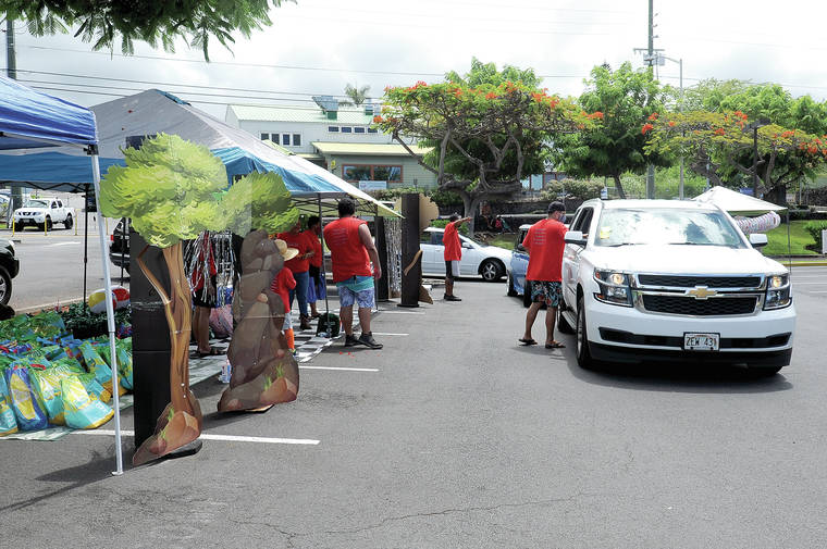 A steady stream of cars filtered through Big Island Grill’s parking lot on July 18 as Aloha MAP staff distributed 900 bags filled with school supplies to students participating in the summer program.