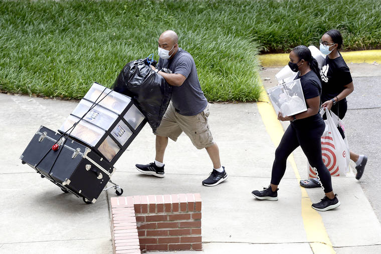 RALEIGH, N.C. — The first wave of college students returning to their dorms aren’t finding the typical mobs of students and parents. What they found Friday were strict safety protocols and some heightened anxiety amid a global pandemic where virus infections are growing in dozens of states.