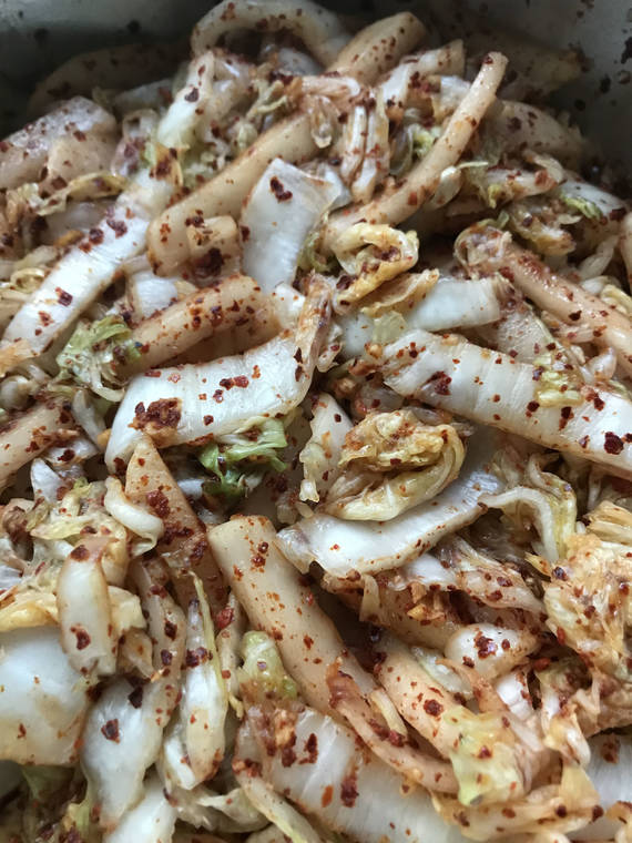 Earlier this year, I had Tracy Kim on my “Audrey Wilson’s Cooking Show” on NaLeo TV and she made kimchi. But unfortunately, she did not have a recipe written down — everything was by her experience and eyeballing.