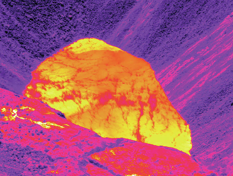Globally, only a few volcanic lakes have surface temperatures greater than 80 degrees Celsius (176 degrees Fahrenheit). So why is Kilauea’s water lake so hot? One likely factor is residual heat in the collapse rubble at the base of Halema‘uma‘u, from rock that was heated by the lava column prior to the 2018 collapse. The nearby hot (at least 150 degrees Celsius — 302 degrees Fahrenheit) gas vents (fumaroles) are another potential explanation for the high temperatures.
