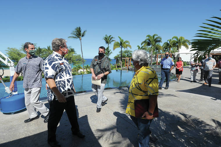 Representatives from several properties on the Gold Coast Thursday shared with state and county legislators and officials their ever-evolving plans and procedures for reopening with on-site visits at The Westin Hapuna Beach Resort, Fairmont Orchid and Hilton Grand Vacations.