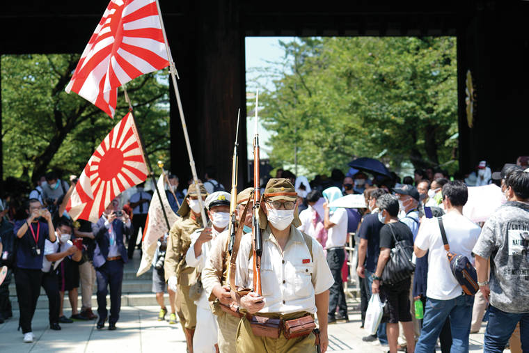 “Remembering those days, I strongly feel we should never wage war,” said Shoji Nagaya, 93, who traveled from Hokkaido in northern Japan to commemorate his brother who died of illness while serving in China. “But politicians today seem to have different views than ours, and I really hope that they will not head to a wrong direction.”