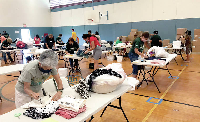 On Aug. 5, Boys and Girls Club of the Big Island, along with volunteers and supporters from West Hawaii, the Hawaii Government Employee Association, the Department of Education Homeless Concerns office and Rotary Club of Hilo Bay gathered to unbox, remove store tags and sort more than 21,000 pieces of new clothing that was recently donated by Old Navy.