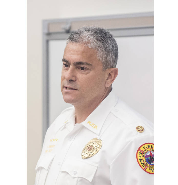 Kim said his son, who was 2016 Aloha Exchange Club fire fighter of the year, was asked by Fire Department administration to be a special operations battalion chief, but Garrett Kim ultimately asked to be reassigned back to captain. The mayor said he didn’t know whether his son is even interested in being chief.