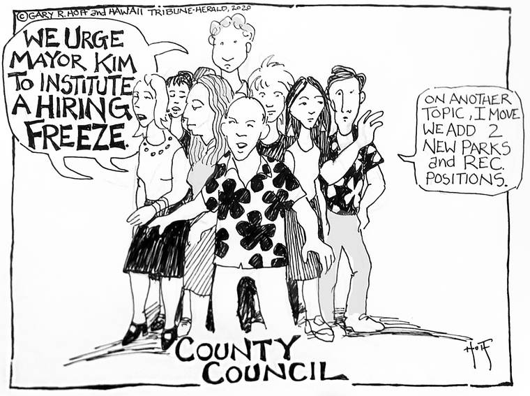 The Big Island as seen by Hawaii Tribune-Herald cartoonist Gary Hoff.