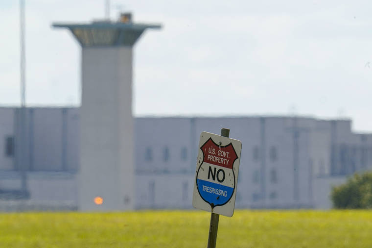A No Trespassing sign stands in front the federal prison complex in Terre Haute, Ind., Wednesday, Aug. 26, 2020. A judge in Washington is halting for now the government’s planned Friday execution at the federal prison in Terre Haute, Indiana of Keith Dwayne Nelson who was convicted of kidnapping, raping and murdering at 10-year-old Kansas girl. (AP Photo/Michael Conroy, File)
