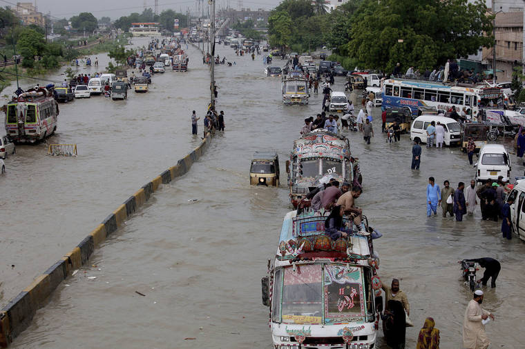 KARACHI, Pakistan — Heavy rains fell on parts of Pakistan for a fifth consecutive night, bringing more flooding to the financial capital Karachi and towns and villages and leaving at least 63 people dead, officials said Friday afternoon. Rescuers evacuated people from flooded neighborhoods.