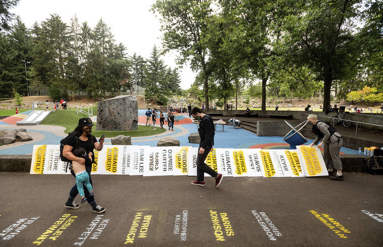 Demonstrations in Portland started in late May after the police killing of George Floyd in Minneapolis. They have often been marked by vandalism and violence. Black Lives Matter rallies were taking place in the city Saturday evening and night.