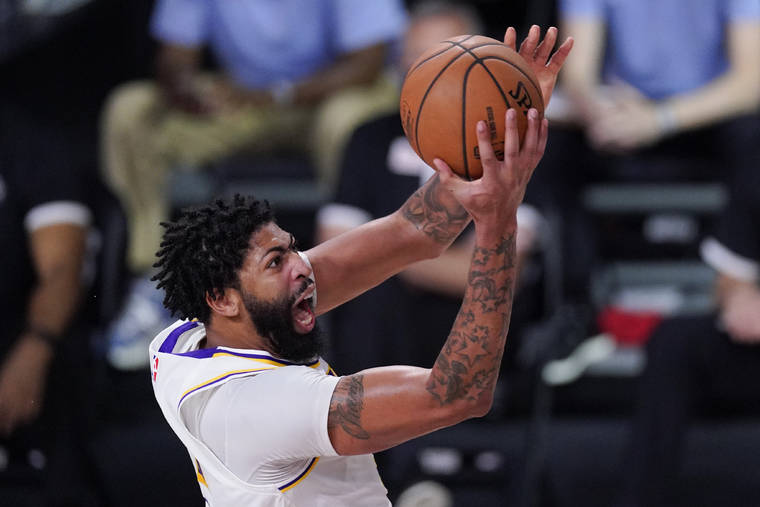 Associated Press The Lakers' Anthony Davis drives to the basket Saturday against the Houston Rockets during the second half of an NBA conference semifinal playoff basketball game.