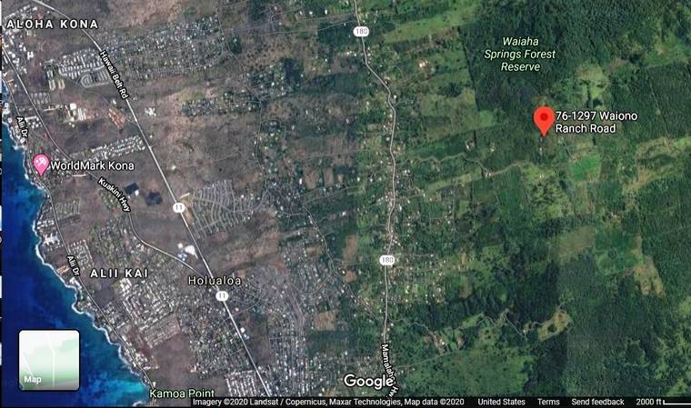The property, in the state agricultural district, is located at 76-1297 Waiono Ranch Road, about 1. 5 miles east and mauka of the Mamalahoa Highway-Waiono Ranch Road intersection. The 2.25-acre lot is part of a 20-acre condominium property regime unit which is part of Waiono Meadows subdivision, an 11-lot subdivision created in 1987 with lot sizes ranging from 38 to 1,068 acres.