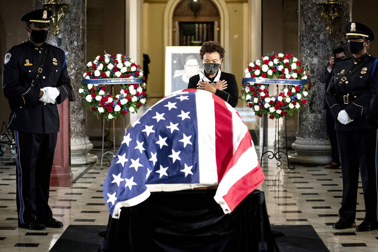 WASHINGTON — Supreme Court Justice Ruth Bader Ginsburg lay in state Friday at the U.S. Capitol as the first woman ever so honored, making history again as she had throughout her extraordinary life while an intensifying election-year battle swirled over her replacement.