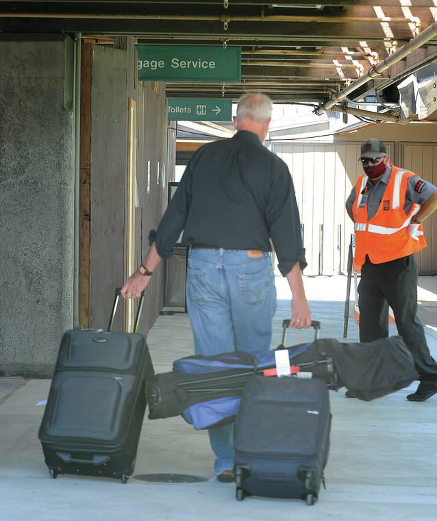 A passenger arrives at Ellison Onizuka Kona International Airport Honolulu Tuesday afternoon. (Laura Ruminski/West Hawaii Today)