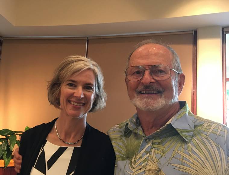 Courtesy photo by Helen Hemmes Jennifer Doudna, left, Nobel Prize 2020 winner in chemistry with retired University of Hawaii at Hilo Professor of Biology Don Hemmes in September 2019.