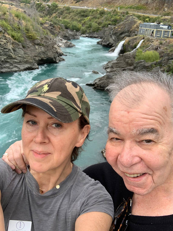 This 2019 photo provided by Fiona Prine shows Prine and husband John in New Zealand. Both battled COVID-19, but John lost his life to the disease. (Fiona Prine via AP)