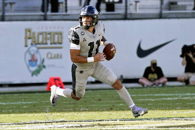The Knights compiled 689 yards of total offense on Saturday, quarterback Dillon Gabriel – a Mililani (Oahu) alum – threw for 422 yards and five touchdowns, running back Greg McCrae ran 25 times for 162 yards and wide receiver Marlon Williams caught nine passes for 174 yards and three touchdowns.