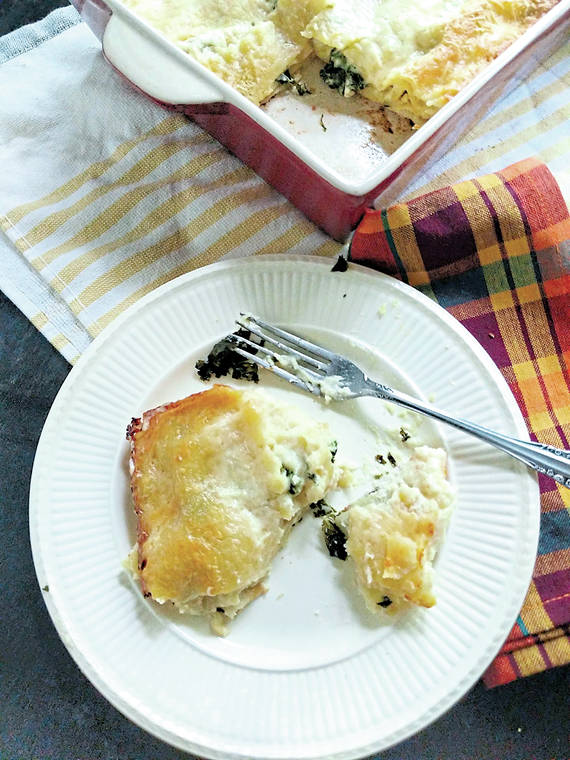 To make the filling, you can either puree the roasted squash like I did and then mix it with the ricotta or simply layer slices or chunks of the cooked vegetable on top of the noodles with cheese. If you don’t care for kale, substitute spinach or leave it out altogether. It’s also OK to use tomato sauce instead of bechamel and tuck cooked ground meat or sausage between the layers to make carnivores happy.
