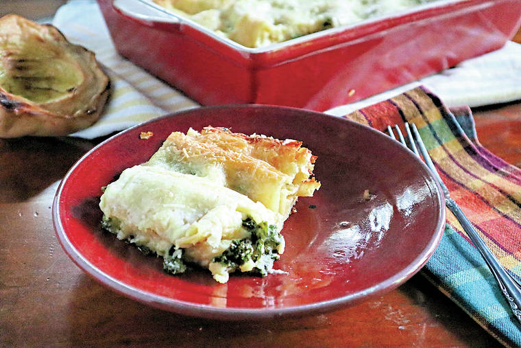 To make the filling, you can either puree the roasted squash like I did and then mix it with the ricotta or simply layer slices or chunks of the cooked vegetable on top of the noodles with cheese. If you don’t care for kale, substitute spinach or leave it out altogether. It’s also OK to use tomato sauce instead of bechamel and tuck cooked ground meat or sausage between the layers to make carnivores happy.