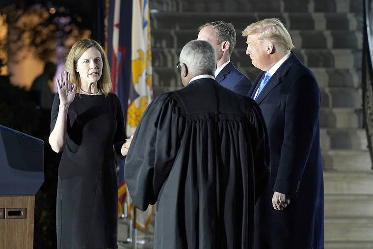 Monday’s vote was the closest high court confirmation ever to a presidential election, and the first in modern times with no support from the minority party. The spiking COVID-19 crisis has hung over the proceedings. Vice President Mike Pence declined to preside at the Senate unless his tie-breaking vote was needed after Democrats asked him to stay away when his aides tested positive for COVID-19. The vote was 52-48, and Pence’s vote was not necessary.