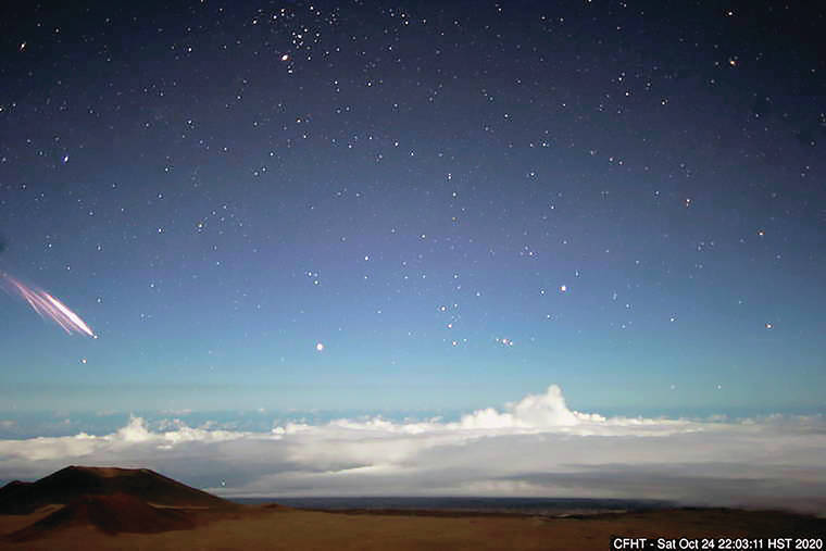 The Canada-France-Hawaii Telescope atop Maunakea captured an image of the rocket booster streaking across the sky.