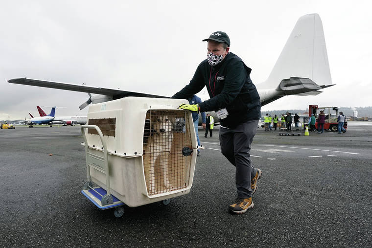 The furry friends arrived in Seattle Thursday on a chartered Hercules C-130 plane. The rescue flight was necessary because the coronavirus pandemic has led to overcrowding in Hawaii pet shelters.