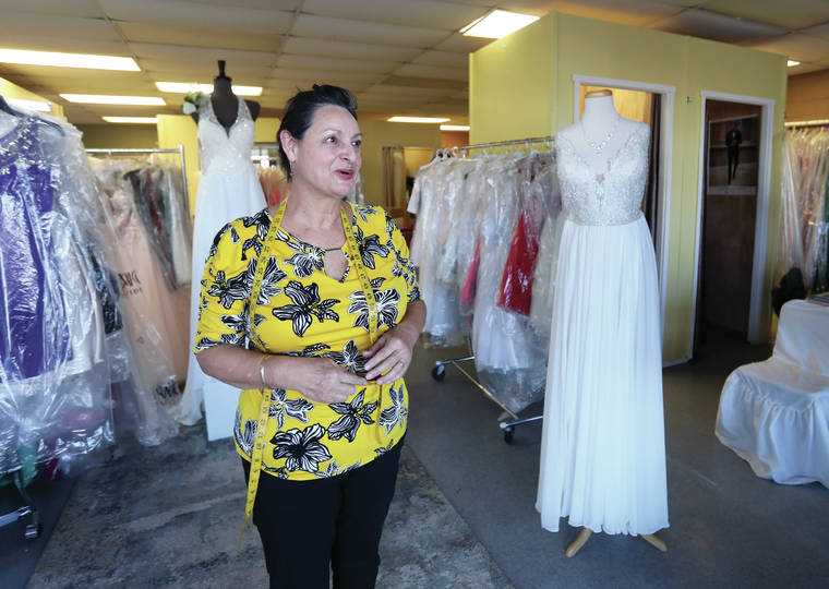 Business at Haku Formals has picked up since the beginning of the pandemic. Owner Tressie Richardson has been getting wedding inquiries and more requests for alterations at her shop in Hilo.
