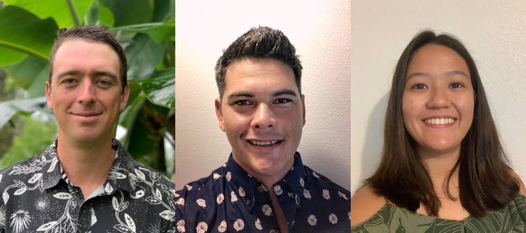 Colin Conway is an agriculture major with focus on agroecology, Matthew Dye is an agriculture major with specialization in aquaculture and Paige Hamada is an environmental science major.