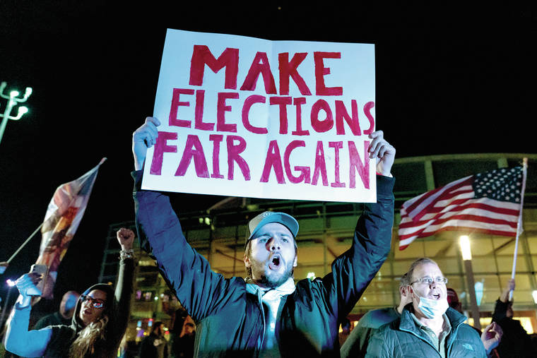With his pathway to re-election appearing to shrink, Trump on Thursday advanced unsupported accusations of voter fraud to falsely argue that his rival was trying to seize power. It amounted to an extraordinary effort by a sitting American president to sow doubt about the democratic process.