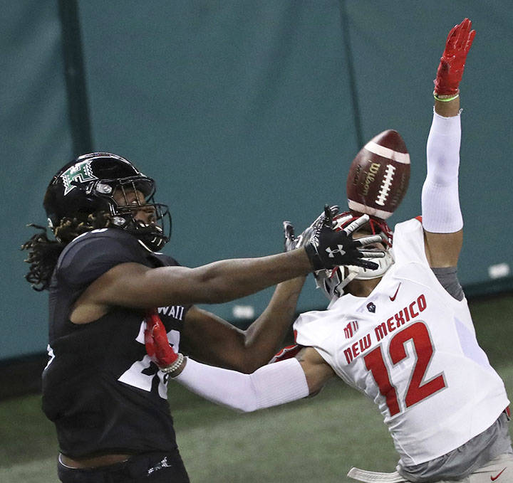 George Steinkamp made the second of his four field goals to give the Lobos a 13-point lead early in the second quarter but Mardner’s 42-yard touchdown catch made it 20-14 at halftime. Cordeiro hit Bowns for a 42-yard score on the opening drive of the second half and, after New Mexico went three-and-out, Bowers scored on a diving 40-yard catch to give the Rainbow Warriors a 28-20 lead with 11:55 left in the third quarter.