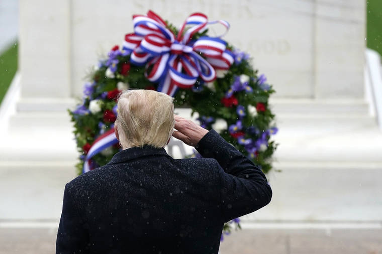 Although his official schedule has been bare of public events, Trump has made several personnel moves — firing Defense Secretary Mark Esper and installing three staunch loyalists in top defense jobs. His pick as acting defense secretary, Christopher Miller, was among the Pentagon brass that joined him at Arlington.
