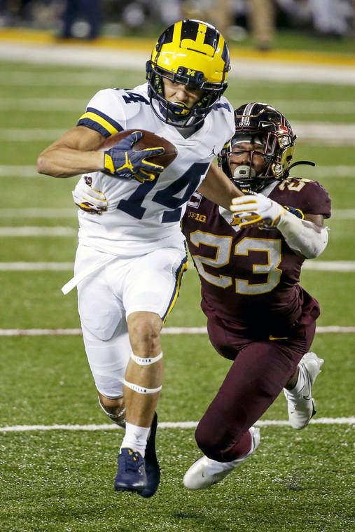 The 6-foot, 180-pounder has been one the most productive receivers for Michigan this season, too. He is third on the team with 118 receiving yards on eight catches, including his first touchdown reception in Saturday’s loss to Indiana.