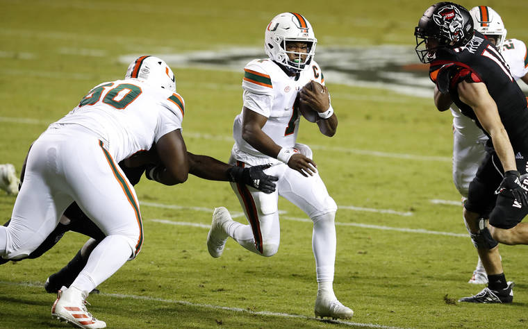The Hurricanes (6-1, 5-1) still have a chance to reach the Atlantic Coast Conference championship game if they get some help. The Hokies (4-3, 4-2) have had a season filled with ups and downs — none farther down than last week when they lost at home to Liberty on a long, last-second field goal.
