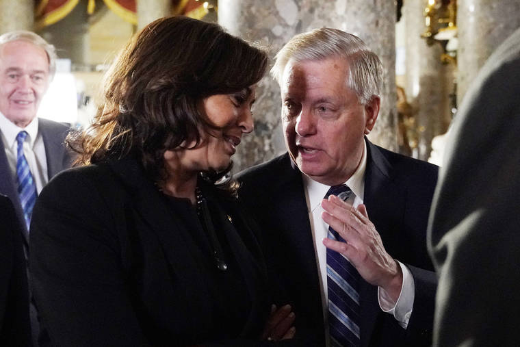 WASHINGTON — When Kamala Harris returned to the Senate this week for the first time as vice president-elect, her Republican colleagues offered their congratulations and Sen. Lindsey Graham greeted her with a fist bump.