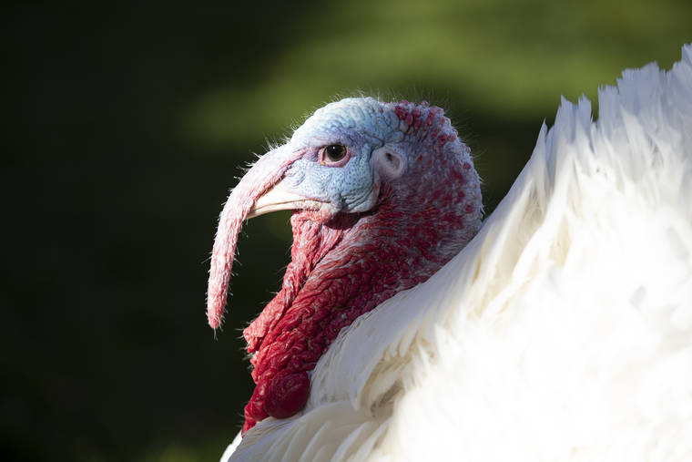 Butter, last year’s national Thanksgiving turkey, walks in in the Rose Garden of the White House before being pardoned by President Donald Trump, Tuesday, Nov. 26, 2019, in Washington. (AP Photo/ Evan Vucci)