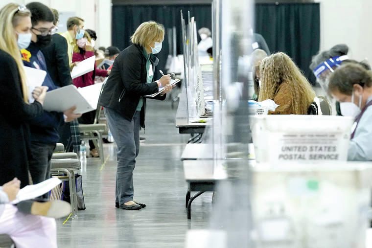 At least one Trump observer was escorted out of the building by sheriff’s deputies Saturday after pushing an election official who had lifted her coat from an observer chair. Another Trump observer was removed Friday for not wearing a face mask properly as required.